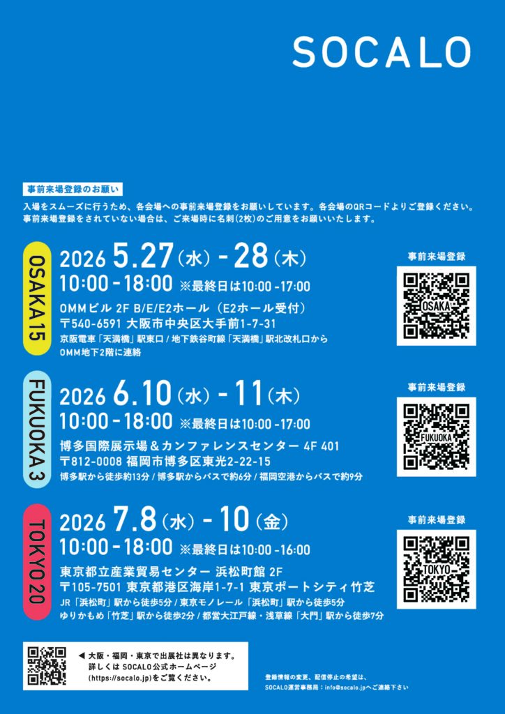 開催詳細・来場事前登録はSOCALO公式サイトにて:
